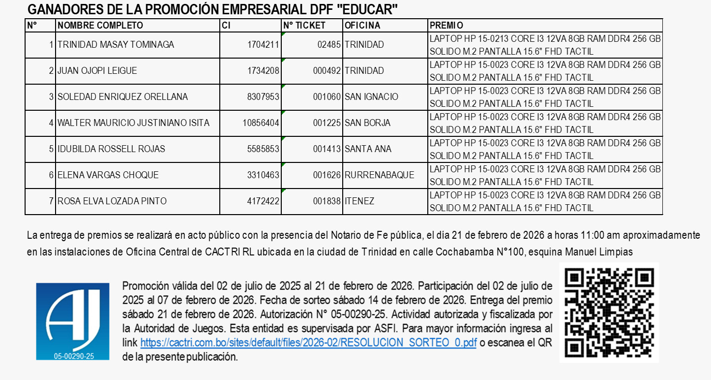 GANADORES PROMOCION EMPRESRIAL DPF EDUCAR